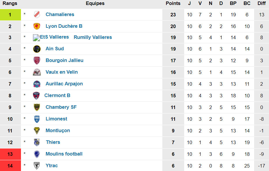 Le FC Limonest-Saint-Didier est dixième avec onze points, trois victoires, deux nuls et cinq défaites.