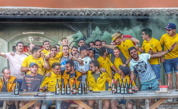 Mais avant de penser à la saison prochaine, toute la bande de copains est passée du côté du célèbre caveau de Clochemerle pour fêter ça dignement, évidemment avec modération parce que la D3... ca ne rigole plus.