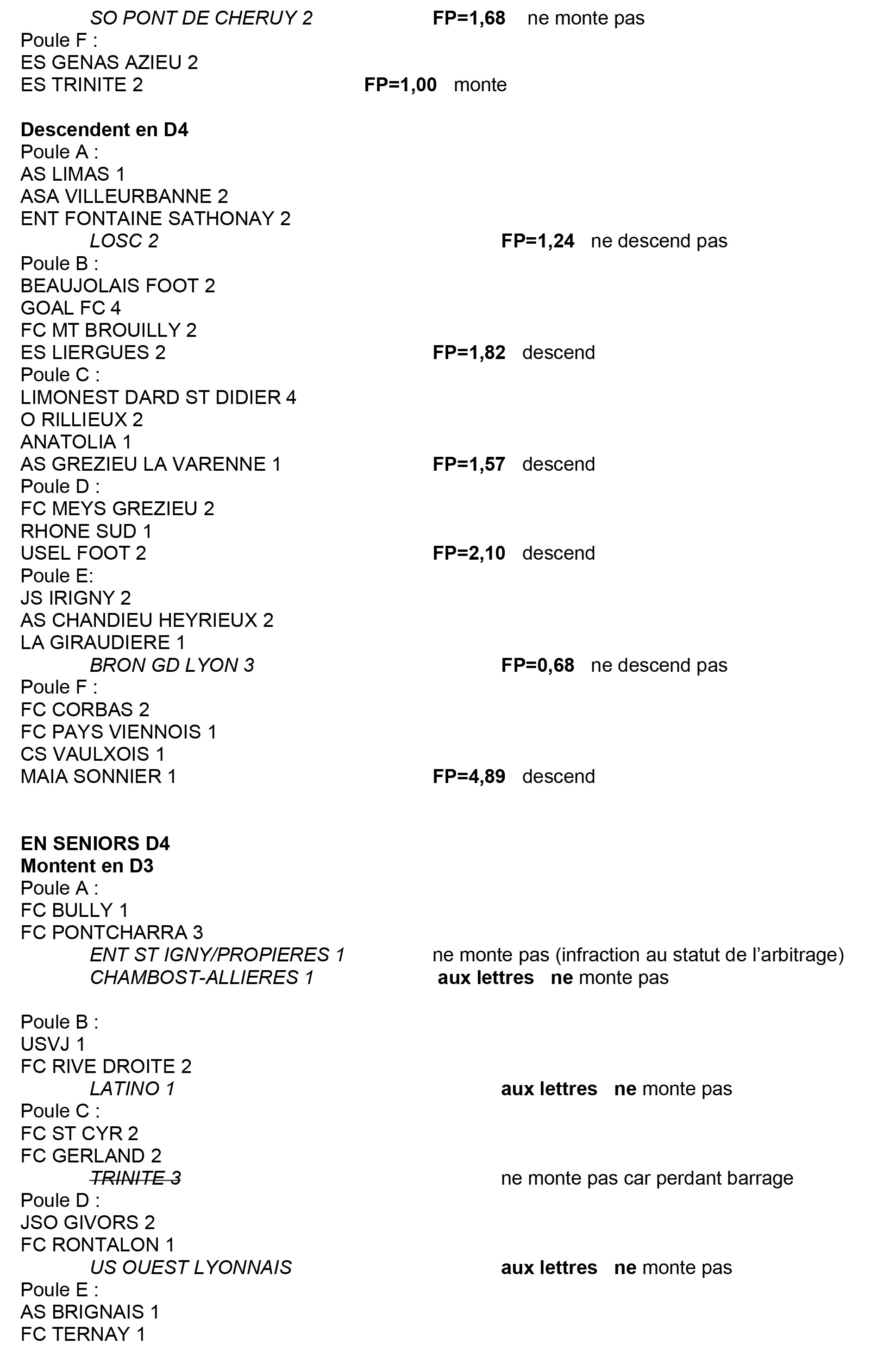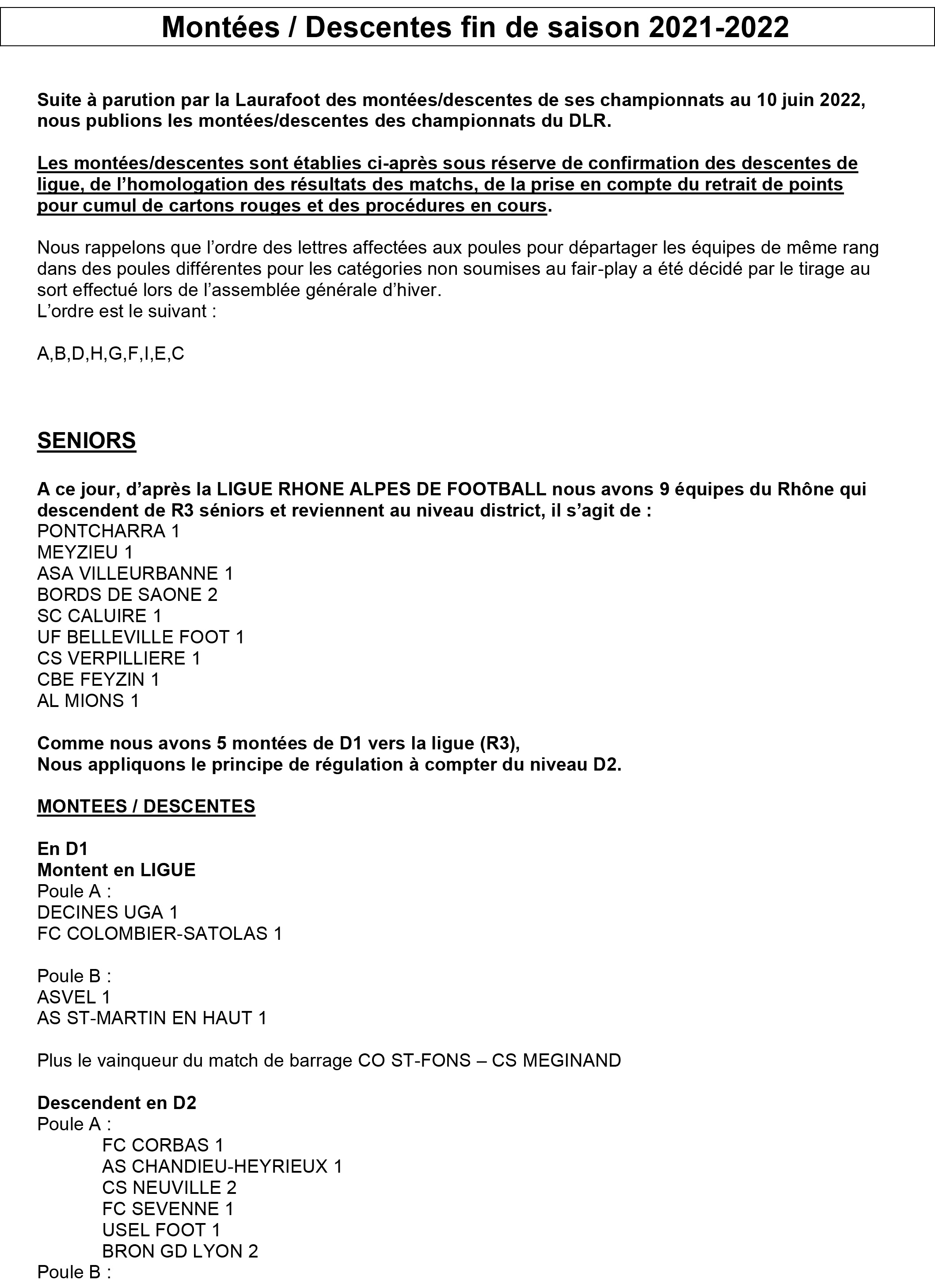 Suite à parution par la Laurafoot des montées/descentes de ses championnats au 10 juin 2022, le District de Lyon et du Rhône a publié les montées/descentes de ses championnats seniors