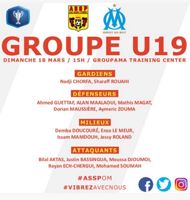 GAMBARDELLA U19 - Le GROUPE de l'AS SAINT-PRIEST contre l'OM