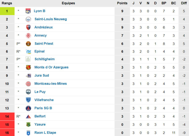 Tout va bien pour les Olympiens qui ont réalisé le sans-faute en trois journées. Si à domicile, les succès l’ont été au minimum, à l’extérieur, cela semble plus limpide. Le FC Annecy a été surpris par le SC Schiltigheim à domicile (2-2), mais reste invaincu (2 victoires, un nul).
